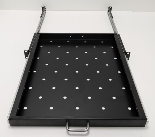 Výsuvná 741mm police určená pro montáž do stojanových rozvaděčů řady ECO a TELCO hloubky min. 1000 mm, výška 1U, nezabírá místo na čelní stojně, nosnost 60 kg.