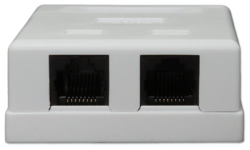 Nestíněná zásuvka na zeď se 2 konektory RJ-45, narážecí kontakty.