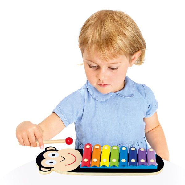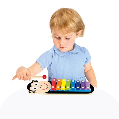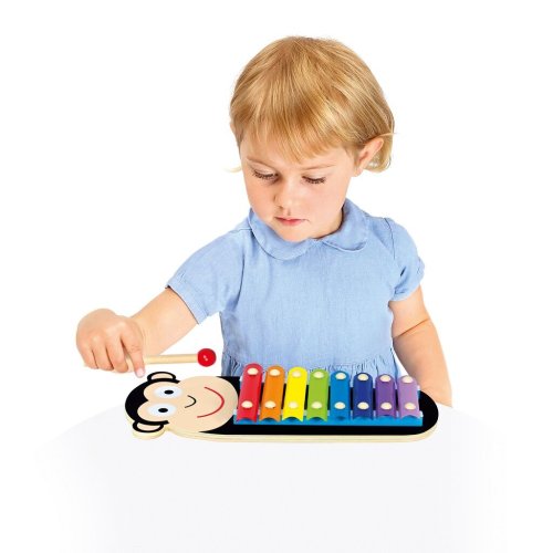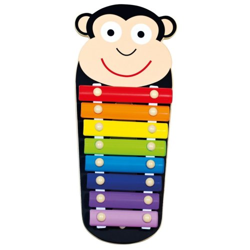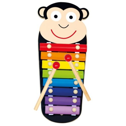 Dětský xylofon s motivem opičky. 3-dílná sada s 8 kovovými zvukovými pláty, které nabízejí hraní v plném rozsahu. Xylofon nabízí dětem příležitost seznámit se se základy hudby a rozvíjet svůj hudební talent. Je tak ideální hračkou pro první dětské hudební kroky.