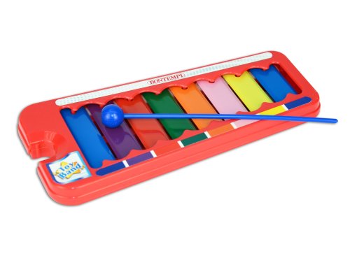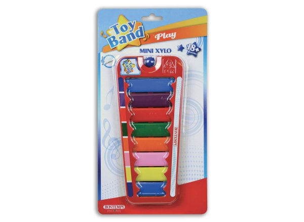 Pestrobarevný xylofon, který obsahuje 1 paličku a vydává 7 tónů.