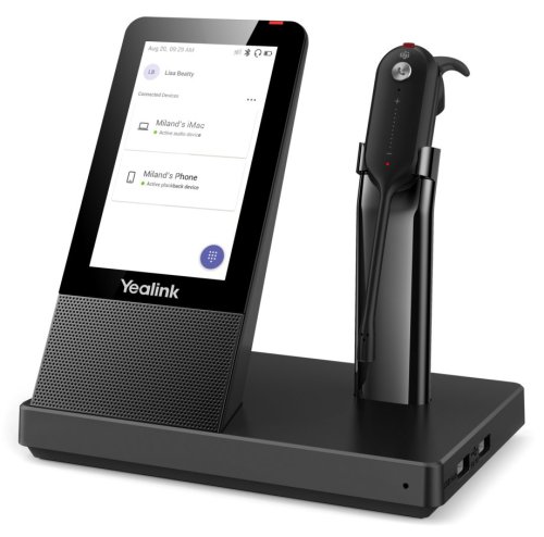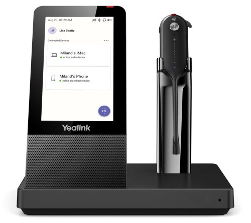 Aplikované technologie jako Yealink Super Wideband HD Audio nebo Acoustic Shield optimalizují a zvyšují výslednou kvalitu zvuku, což společně s lehkým ovládáním pomocí dotyku prstu a pohodlným nošením zvyšuje výsledný zážitek při používání. Celodenní pohodlí a komfort zajistí i 4 různé styly nošení náhlavní soupravy, stejně jako různé velikosti koncovek do uší, díky čemuž si můžete upravit styl nošení náhlavní soupravy dle vašich preferencí. V neposlední řadě DECT technologie zajišťuje dosah až do vzdálenosti 120 m. V pohotovostním režimu je výdrž náhlavní soupravy až 54 hodin a při realizaci hovorů je její výdrž až 8 hodin. Nabíjení probíhá v momentě, kdy je náhlavní souprava položena na stojanu základny a plné nabití zabere 2,5 hodiny.
