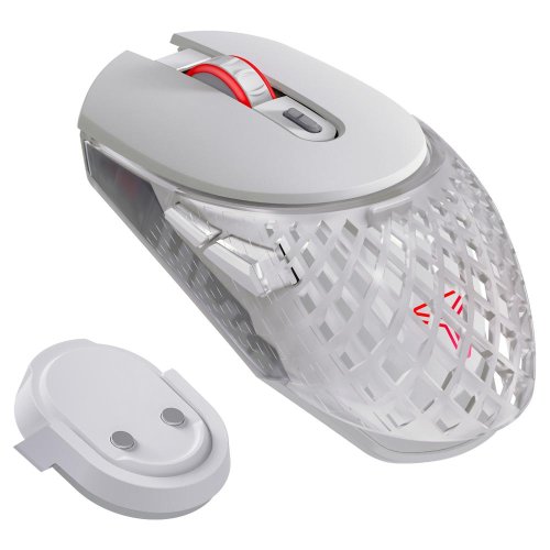 Počet tlačítek: 6 Jmenovitý vstup: 5 V < 210 mA (USB-C) Vestavěná baterie: 500 mAh (Lithium-ion) Připojení: 2,4G bezdrátové / BT / USB-C Provozní dosah: 10 metrů Rozhraní: USB Snímač myši: Pixart 3335 Rozlišení: max. 15000 DPI Frekvence snímání: 125/250/500/1000 Hz Zrychlení: 40G Max. výkon vysílače při frekvenci 2405 MHz – 2475 MHz: 60mW Nepřetržitá provozní doba: až 50 hodin (frekvence snímání 1000 Hz bez RGB) Délka kabelu: 1,5 cm (opletený) Rozměry: 115 × 61 × 36 mm Hmotnost myši: přibližně 79 g