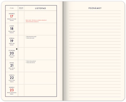 Seznam varování týkajících se bezpečnosti kalendářů, poznámkových bloků a plánovačů vychází z požadavků nařízení (EU) 2023/988 o obecné bezpečnosti výrobků (GPSR). 1. Riziko udušení (pro výrobky s malými prvky): Dávejte pozor, aby se malé prvky, jako jsou samolepky nebo sponky, nedostaly do rukou dětí, protože hrozí udušení. 2. Opatrnost při používání ostrých nástrojů: Při použití nůžek, nožů nebo jiných ostrých nástrojů pro řezání listů nebo dekorací buďte obzvláště opatrní, abyste se vyhnuli poranění. 3. Bezpečnost materiálů: Vybírejte výrobky vyrobené z netoxických materiálů, zejména pokud jsou určeny pro děti. Ujistěte se, že barvy a inkousty použité v kalendářích a poznámkových blocích jsou bezpečné a mají příslušné atesty. 4. Riziko požáru (u výrobků s elektronickými prvky): Pokud kalendář nebo plánovač obsahuje elektronické prvky, jako je LED podsvícení, nenechávejte ho bez dozoru, abyste zabránili riziku požáru. 5. Skladování za vhodných podmínek: Chraňte kalendáře, poznámkové bloky a plánovače před vlhkostí a extrémními teplotami, které mohou poškodit papír a další materiály. 6. Likvidace: Použité nebo nepotřebné kalendáře a poznámkové bloky likvidujte způsobem šetrným k životnímu prostředí a dejte je k recyklaci. Vyhněte se spálení papíru na zakázaných místech. 7. Bezpečné používání per a tužek: Nezapomeňte bezpečně ukládat pera a tužky, zejména v přítomnosti dětí. Ostré konce mohou představovat nebezpečí. 8. Opatrnost při použití magnetů (pokud existují): Pokud výrobek obsahuje magnety, ujistěte se, že jsou bezpečně připevněny. Volné magnety mohou být nebezpečné pro děti v případě požití. 9. Alergie: Pokud si všimnete alergické reakce na materiály, ze kterých je výrobek vyroben, přestaňte ho používat. 10. Dávejte pozor na kovové prvky (sponky, spirály): Dávejte pozor na ostré kovové prvky, jako jsou sponky nebo spirály, které mohou způsobit poranění.