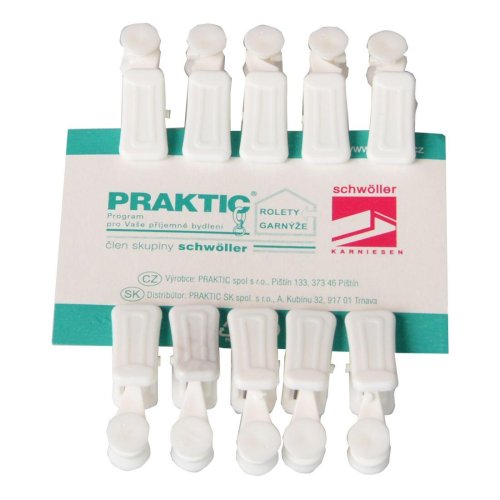 Žabka pro U kolejničku PH BÍ ( 10 ks ) Barva: bílá Materiál: plast Balení: 10 ks Žabky slouží pro snadné připevnění látky.