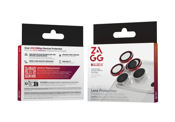 ZAGG InvisibleShield Premium Glass (Camera) Apple iPhone 17 Pro/17 Pro Max/16 Pro/16 Pro Max/15 Pro/15 Pro Max Red Ochranné sklo ZAGG chrání displej před drobnými škrábanci a pomáhá tlumit nárazy při pádech. Vlivem tvrdosti 9H perfektně ochraňuje obrazovku vůči poškození. Zevní povrchová úprava skla snižuje riziko zanechávání otisků. Příjemnou vlastností jsou zaoblené 2.5D hrany, které hezky splývají s displejem. Zachovává perfektní dotykové vlastnosti displeje, protože má lepicí vrstvu po celé ploše. Výhodou je, že ochranné sklo pokrývá celou plochu zařízení od okraje k okraji. Celý displej tak zůstane dokonale chráněný.