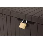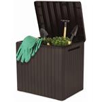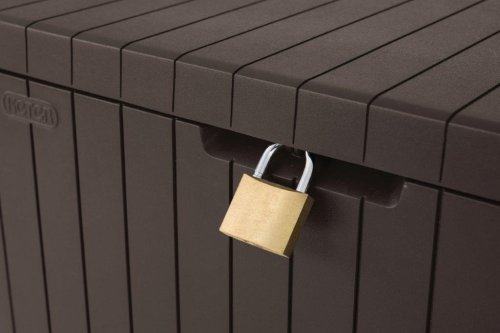 Úložný zahradní box City Storage značky Keter v hnědé barvě má kapacitu 113 litrů. Svým designem připomíná přírodní dřevěné palubky. Skvěle tak doplní jak moderní, tak i tradiční look okolí. Velkou výhodou boxu je jeho nízká hmotnost a voděodolnost.