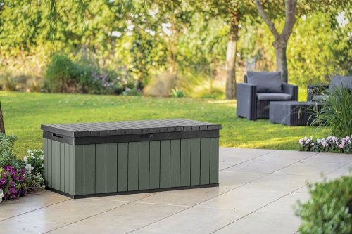 Najděte pro box ideální místo na zahradě. Díky struktuře, která připomíná dřevo, zapadne do každého prostředí. Uložené věci navíc můžete uzamknout uvnitř boxu. Hydraulický pístový systém zajistí plynulé a bezpečné zavírání a otevírání víka. Po zavření se na něj navíc usadí až 2 lidi.