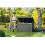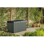 Najděte pro box ideální místo na zahradě. Díky struktuře, která připomíná dřevo, zapadne do každého prostředí. Uložené věci navíc můžete uzamknout uvnitř boxu. Hydraulický pístový systém zajistí plynulé a bezpečné zavírání a otevírání víka. Po zavření se na něj navíc usadí až 2 lidi.