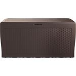 Hnědý zahradní box Keter Samoa Rattan nabízí kapacitu 270 l, takže poslouží jako perfektní úložný prostor pro polštáře a ostatní doplňky vaší zahrady, terasy či pergoly. Zabudovaný podlahový panel chrání obsah skříně proti vodě, bahnu, prachu a dalším nečistotám. Složení skříně zvládnete během krátké chvíle a to bez použití jakéhokoliv nářadí. Box má vestavěná kolečka pro snadný přenos a jednoduchá je i údržba této skříně, jelikož vám stačí hadřík s vodou a pár krátkých chvil.