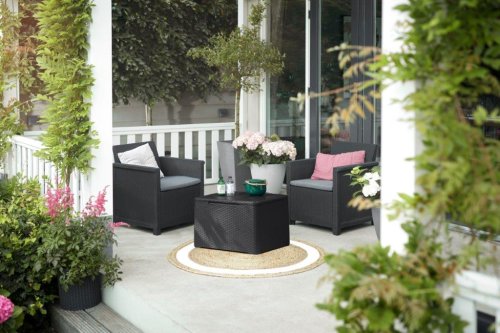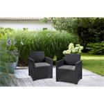 Křesla s ratanovou texturou vkusně doplní téměř každý design zahrady, ale můžete je klidně použít i v interiéru. Materiál křesla je navíc odolný vůči nepříznivému počasí a UV záření, takže krásná grafitová barva jen tak nevybledne.