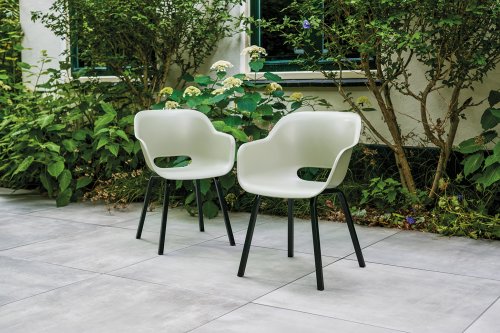 Set – 2 zahradní židle/křesla, zaoblené hrany, odolnost vůči povětrnostním vlivům, kovové nohy, ergonomický design.
