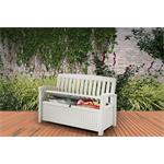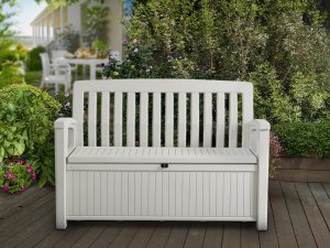 Sháníte praktické a zároveň pohodlné posezení? Pořiďte si zahradní lavici Patio Bench značky Keter, na kterou se bez obav posadí dva lidé. Okouzlí vás její elegantní design v bílé barvě, který věrně imituje dřevo. Do šikovného úložné prostoru pod sedadlem s objemem 227 l můžete odkládat nejrůznější zahradnické náčiní, deky nebo polštáře na sezení. Velkou výhodou je také možnost uzamčení úložného boxu.