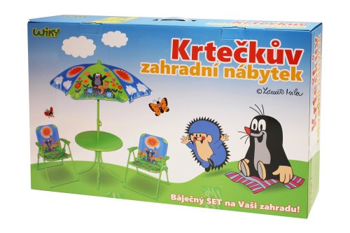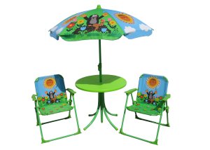 Souprava nábytku s motivem Krtečka zpestří dětem jejich dovádění na zahradě! Skvělou zahradní soupravu děti opravdu báječně využijí po celé letní období, u stolečku mohou děti spořádat svou svačinku, připravit hostinu pro své kamarády, a to pro ty op