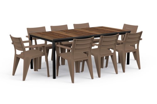 Díky unikátnímu povrchu DecoCoat odolá stůl nepříznivým povětrnostním vlivům a poškrábání. Zároveň si zachovává svou barvu. Textura navíc připomíná skutečné dřevo.