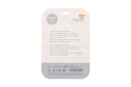 Roztomilý fialový zajíček je ideální první hračka pro miminka již od narození. Díky dlouhému měkkému tělíčku se dobře drží v malých ručičkách a po stisku vydává jemný pískací zvuk, který podporuje sluchový rozvoj dítěte a přirozeně upoutává jeho pozornost. Na spodní části je umístěno měkké plastové kousátko ve tvaru kytičky, které uleví citlivým dásním při růstu prvních zoubků. Kontrastní černobílé vzory na tělíčku zároveň podporují rozvoj vizuálního vnímání. Zajíček je vyroben z hebkého a bezpečného plyše, vhodného i pro nejmenší děti. Produkt je certifikován v ČR, takže splňuje přísné bezpečnostní standardy.