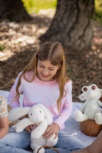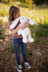 Tento roztomilý krémový plyšový zajíček je ideálním společníkem pro všechny, kdo si užívají jemnost a pohodlí. S velikostí přibližně 41 cm je dostatečně velký na to, aby poskytl útěchu a teplo při mazlení, ale zároveň dost kompaktní, aby se stal oblíbeným kamarádem na cesty. Zajíček je vyroben z měkkého a příjemného plyše, který je ideální na objetí. Jeho krémová barva a jemné detaily z něj činí skvostný doplněk do každého dětského pokoje. Perfektní dárek pro děti i dospělé, kteří ocení jeho roztomilý vzhled a hřejivý komfort.