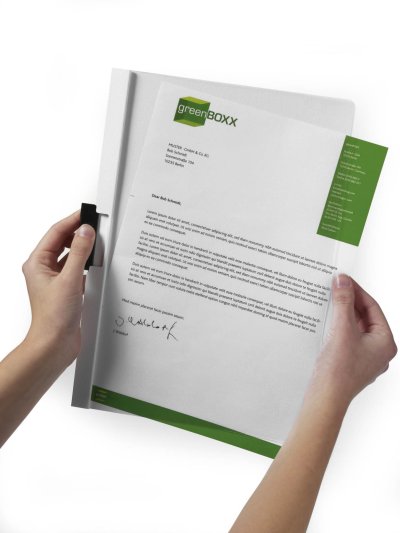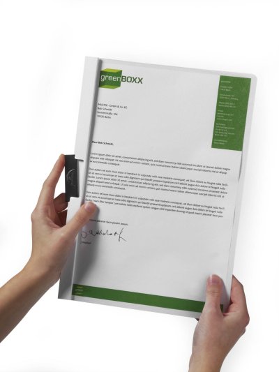 • Systém DURACLIP®: Vytáhněte klip do strany, vložte dokumenty a zatlačte klip zpět - jednoduché! Unikátní odpružený ocelový klip se přirozeně přizpůsobuje počtu vložených listů, ale nedochází k jeho roztahování. Proto i při následném vložení méně listů se klip menšímu počtu přizpůsobí a perfektně je drží na svém místě.