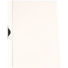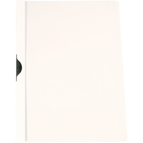 Desky spisové, materiál polypropylen Přední strana transparentní Kovový černý klip Balení 25 ks formát-A4, kapacita-30 listů, barva-bílá