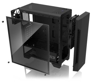 Počítačová skříň v provedení Middle tower nabízí dvě 3,5" a dvě 2,5" pozice pro pevné a SSD disky. Na horním panelu jsou umístěny dva USB 2.0 porty, jeden USB 3.0 port, sluchátkový výstup a vstup pro mikrofon. Skříň je osazena třemi 120 mm ventilátory. Důmyslné řešení umožňuje umístění celkem až 8 ventilátorů. Ve skříni je dostatek prostoru pro chladič CPU do výšky až 156 mm a grafickou kartu o délce až 330 mm. Samozřejmostí jsou prachové filtry. Boční strana skříně disponuje průhlednou bočnicí. Skříň je dodávána bez zdroje.