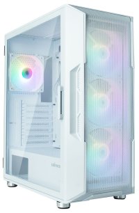 Kvalitní počítačová skříň formátu Middle Tower nabízí tři 2,5" pozice pro SSD disky a dvě 3,5" pozice pro pevné disky. Předinstalovány jsou čtyři 120 mm ventilátory s RGB podsvícením. Na horním panelu se nachází dva porty USB 3.0, jeden port USB 2.0, sluchátkový výstup a audio vstup pro mikrofon. Ve skříni je dostatek prostoru pro chladič CPU do výšky až 160 mm a grafickou kartu o délce až 355 mm. Důmyslné řešení umožňuje pohodlné umístění až 360 mm dlouhého výměníku vodního chlazení na přední straně. Skříň je vybavena průhlednou bočnicí a předním panelem. Potěší také přítomnost prachových filtrů. Skříň je dodávána bez zdroje.