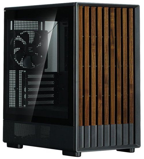 Elegantní počítačová skříň nabízí prosklenou bočnici a stylový přední panel tvořený dřevěnými prvky. Osazení komponentami je lehké díky intuitivnímu systému správy kabeláže, kabely tedy nikde zbytečně nepřekáží. Skříň je osazena třemi 120mm ventilátory. Potěší také možnost rozšíření o dalších 6 ventilátorů, magnetické prachové filtry a vestavěná podpěra grafické karty. Důmyslné řešení umožňuje pohodlné umístění až 240 mm dlouhého výměníku vodního chlazení na horní straně. Ve skříni je dostatek prostoru pro chladič CPU do výšky až 173 mm a grafickou kartu o délce až 340 mm. Na horním panelu se nachází porty USB 3.0, USB-C a kombinovaný audio port pro sluchátka a mikrofon. Skříň je dodávána bez zdroje.