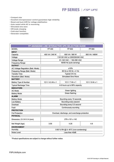 Fortron UPS FSP FP 800VA je UPS záložní zdroj,