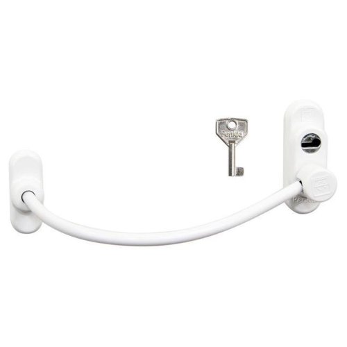 Bezpečnostní lankový zámek pro plastová, hliníková a dřevěná okna. POPIS VÝROBKU - RHL.LZ Umožňuje bezpečné pootevření okna o cca 10 cm. Zabraňuje nežádoucímu pohybu osob ven i dovnitř. Zádržná síla: 5.000 N (500 kg) Délka lanka: 17,5 cm Průměr lanka: 5 mm Barvy: bílá (RAL9016) Balení: 2 ks klíčů a 4 ks samořezných vrutů