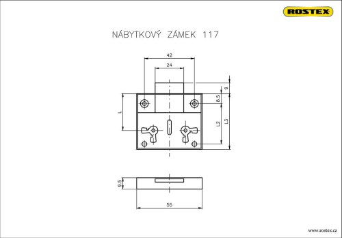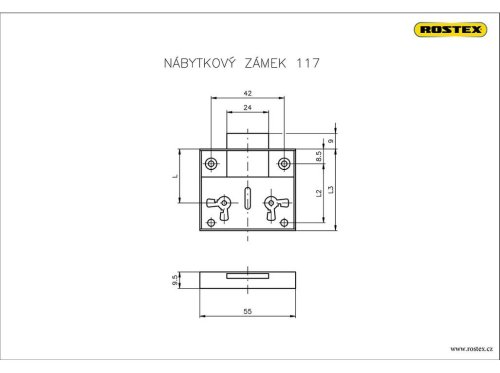 Nábytkový zámek 117/30 s obyčejným klíčem je určen k uzamykání skříněk, skříní a šuplíků.