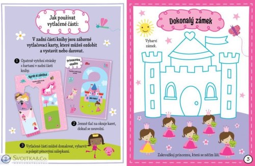 Prozkoumej úchvatný a kouzelný zámek pro princezny. Hry s pěnovými nálepkami dotváří pohádkovou atmosféru princeznovského světa. V této knížce na tebe čeká přes 100 pěnových nálepek. Užiješ si nespočet zábavných činností a úkolů a na památku tohoto dobrodružství ti zůstanou krásné pěnové nálepky a originální vytlačovací karty. Vymáčkni a ozdob si podle sebe záložky do knih, pohlednice, visačky na dveře, postavičky a přání. S pěnovými nálepkami můžeš dozdobit vytlačené karty anebo je nalepit, kam budeš chtít! Zámek pro princezny už čeká a tvé dobrodružství s pěnovými nálepkami právě začíná!