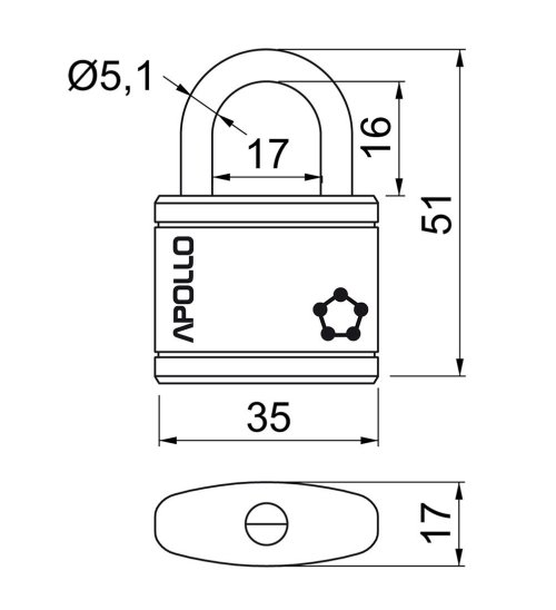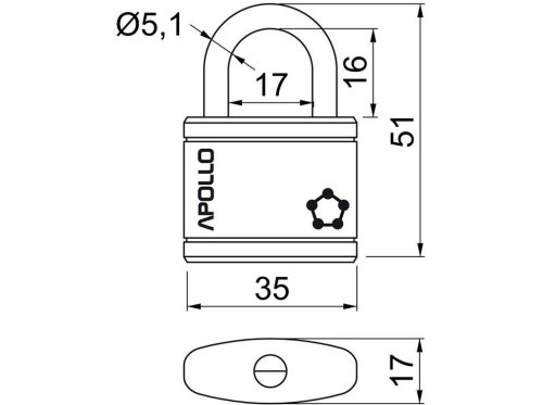Zámek visací APOLLO 35 3 kl. ČER.