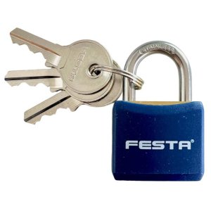 zámek visací s mosazným tělem a nerezovým obloukem mosazné tělo zámku je poplastované klíče 2 ks