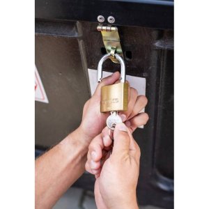 Seznam varování týkajících se bezpečnosti visacích zámků vychází z požadavků nařízení (EU) 2023/988 o obecné bezpečnosti výrobků (GPSR): * Ujistěte se, že je visací zámek vhodný pro chráněný předmět nebo oblast. Nesprávný výběr může mít za následek snadné proražení. * Pravidelně kontrolujte technický stav visacího zámku, zejména uzavíracích mechanismů. Poškození může oslabit její účinek. * Chraňte visací zámek před extrémními povětrnostními podmínkami, jako je mráz, horko a vlhkost, které mohou ovlivnit jeho trvanlivost a funkčnost. * Pokud je visací zámek používán venku, pravidelně jej udržujte mazáním mechanismů, abyste zabránili korozi a zaseknutí. * Dávejte pozor na ostré hrany nebo vyčnívající prvky visacího zámku, které mohou představovat nebezpečí poranění. * Nepoužívejte visací zámek v prostředí obsahujícím chemické látky, které mohou poškodit jeho strukturu nebo mechanismus. * Uchovávejte visací zámek mimo dosah dětí, abyste zabránili náhodnému spolknutí malých částí nebo jejich nebezpečnému použití. * Zabezpečte klíče od visacího zámku na bezpečném místě, daleko od neoprávněných osob, abyste zabránili neoprávněnému přístupu. * V případě visacích zámků s kódovým zámkem pravidelně měňte kombinaci, abyste zvýšili bezpečnost. * Nezapomeňte, že žádný visací zámek není nezničitelný. Představuje to pouze překážku pro potenciálního zloděje.