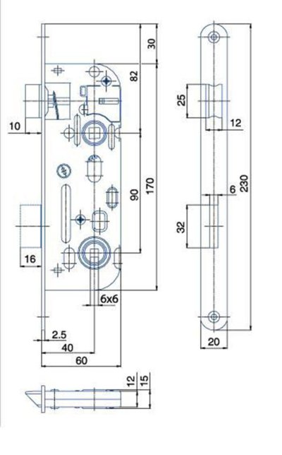 Zadlabací mezipokojový zámek WC 01-16 jednozápadový bez převodu s otvory pro dělené štíty je univerzální na pravé i levé dveře.