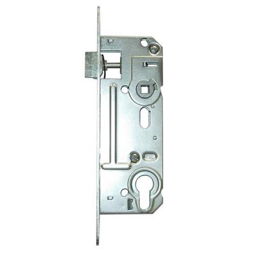 Zadlabací zámek 02-06 s převodem. Šířka 60 mm, rozteč 90 mm. Osa klika klíč 45 mm od čela zámku-hrany dveří. Pro vložku FAB. Kovové pouzdro kliky, zámek je pravo levý (snadné otočení západky), dvouzápadový, otvory pro dělené štíty. Český výrobce. EAN 8595087547569
