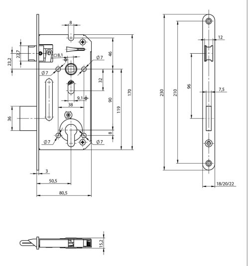 Rozteč Backset Hloubka zádlabu Šířka čela Požární odolnost 90 50 80.5 22 NE