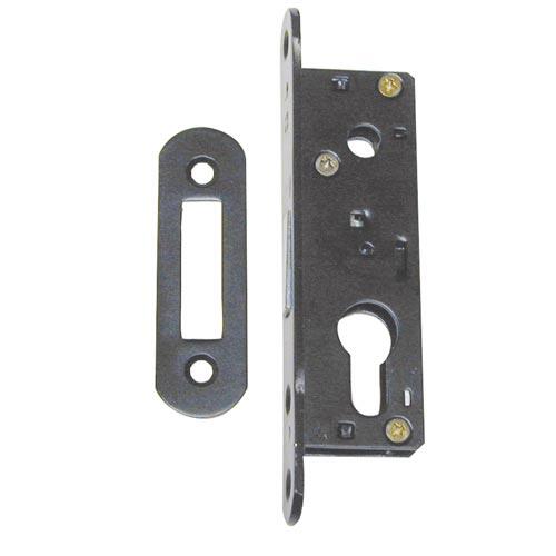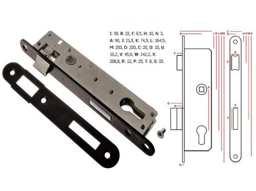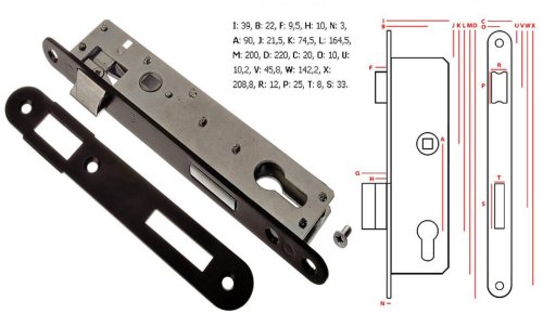 Mezipokojový zadlabací zámek s blokací střelky je bez převodu (střelka ovládaná pouze klikou) a s otvory pro dělené štítky.
