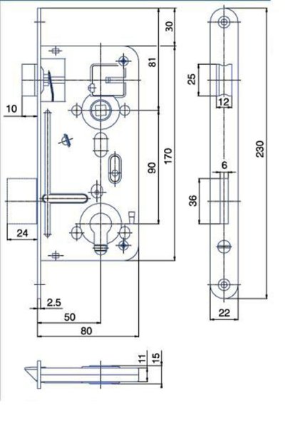 Bezpečnostní zadlabací vložkový zámek K102 dvouzápadový s pojistkou a převodem je univerzální na pravé i levé dveře.