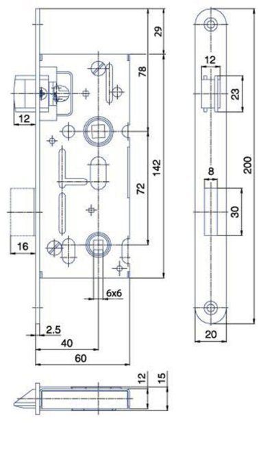 hloubka zadlabání: 60 mm rozteč: 72 mm povrchová úprava: zinek bílý pravolevý WC zámek ořech 6 x 6 mm