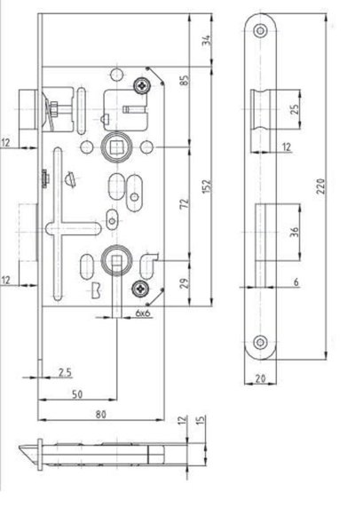 Zámek zadl. K135 - 72/80 P-L WC BÍ Zn s ořechem 6 x 6 mm.