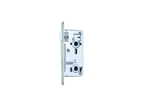 Zadlabací zámek určený pro cylindrickou vložku je jednozápadový, s převodem (střelka ovládaná klikou i klíčem) a s otvory pro dělené štítky.