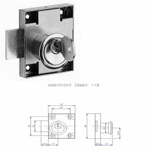 Poniklovaný zásuvkový zámek je určený na uzamčení zásuvek psacích stolů, skříněk a komod.