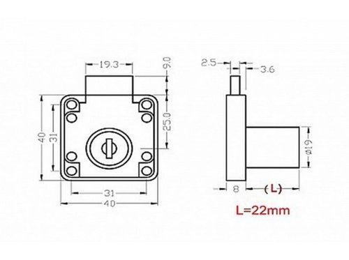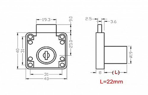 Poniklovaný zásuvkový zámek je určený na uzamčení zásuvek psacích stolů, skříněk a komod.