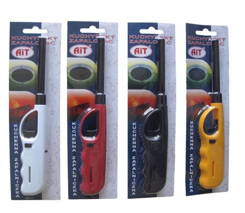 Univerzální zapalovač / podpalovač pro kuchyň a domácnost. Metalická barva. Spolehlivé piezoelektrické zapalování, plněný plynem, znovu plnitelný, stabilní plamen bez plápolání a jiskření. Splňuje ISO 22702. Měrka hladiny plynu, dětská pojistka, délka zapalovače 21.5 cm. Prodej po 1ks (celé prodejní balení je 12 ks). EAN 8594029211391