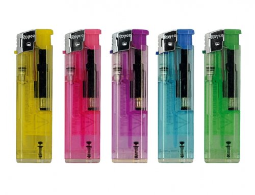 Plynový zapalovač s piezo-elektrickou jiskrou. Zapalovač je plnitelný. Délka: 8 cm. Mix barev.