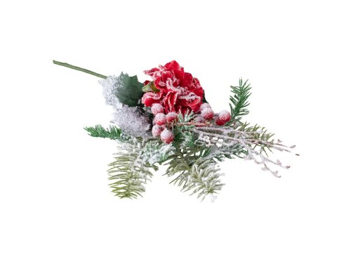 Zápich 380mm zasněžený s růží, červená, bílá, zelená