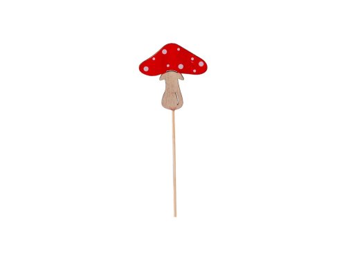 Zápich dřevo 50x63mm + špejle muchomůrka, červeno bílá