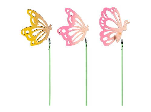 Barevný dřevěný zápich s motivem motýlů je veselým doplňkem jarní a letní výzdoby. Díky praktické špejli jej snadno umístíte do květináčů, truhlíků nebo dekorativních aranžmá. Motýli o rozměru 60×70 mm jsou vyvedeni v pestrém mixu barev a dodají prostoru lehkost a hravost. Ideální pro oživení interiéru i krytých venkovních dekorací. Zboží je dodáváno v mixu. Doručované zboží je vybíráno náhodně a nelze vybrat konkrétní provedení.