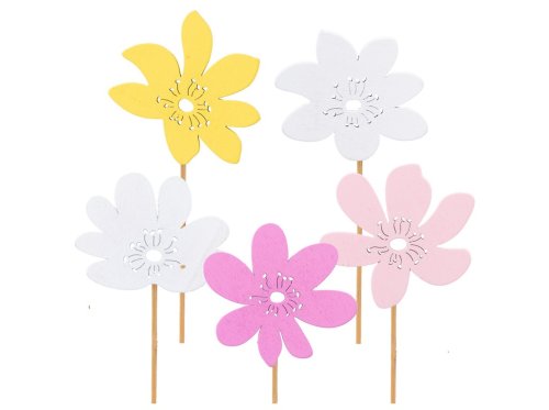Dekorativní dřevěný zápich s roztomilým motivem kytiček je upevněn na dřevěné špejli a proveden v pestrém barevném mixu. Skvěle se hodí k dozdobení květináčů, truhlíků, velikonočních aranžmá, věnců nebo svátečních dekorací. Díky přírodnímu materiálu a veselým barvám vnese do interiéru i exteriéru svěží jarní atmosféru. Zboží je dodáváno v mixu. Doručované zboží je vybíráno náhodně a nelze vybrat konkrétní provedení.