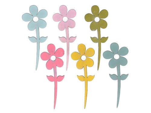Zápich dřevo 6ks 55x150 mm květina, barevná s lepítkem