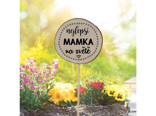 Dřevěný zápich do květináče nebo k bylinkám s potiskem pro maminku – Nejlepší mamka na světě. Průměr kolečka je 5 – 8 cm, výška zapichovátka je přibližně 30 cm. Krásná dekorace pro bylinkovou zahrádku.